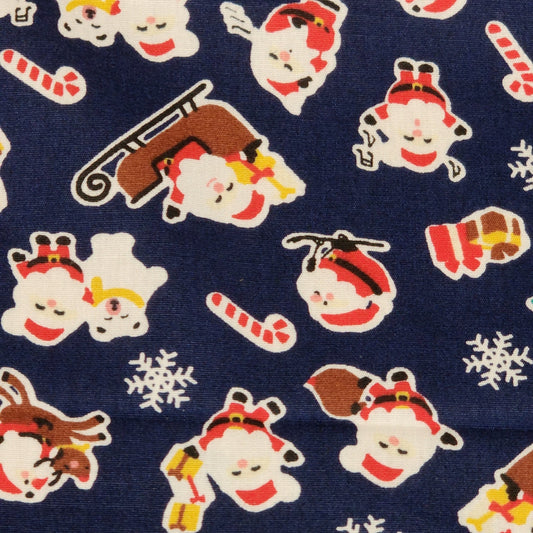 Christmas Cotton Poplin Fabric - Santa Sleighs - Navy Blue Background
