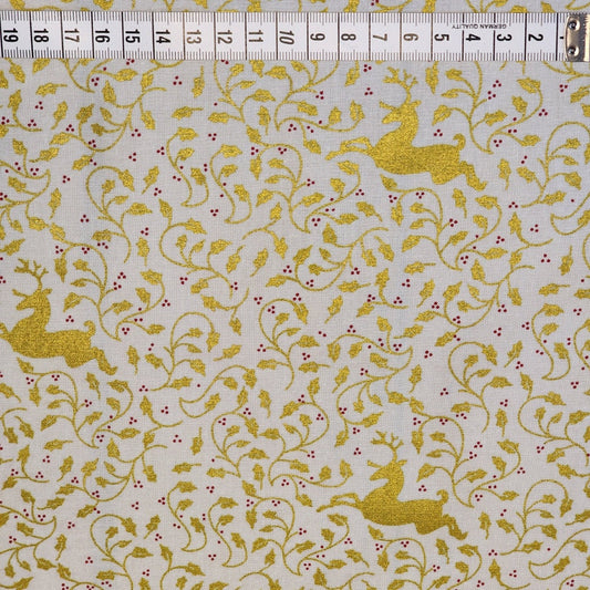 Christmas Reindeer and Holly - Cotton Poplin Fabric - 112cm wide - Cream