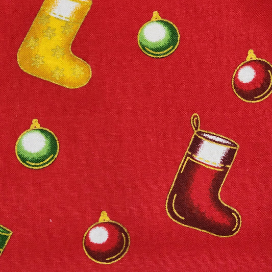 Christmas Stockings and Baubles - Cotton Poplin Fabric - 112cm wide - Red