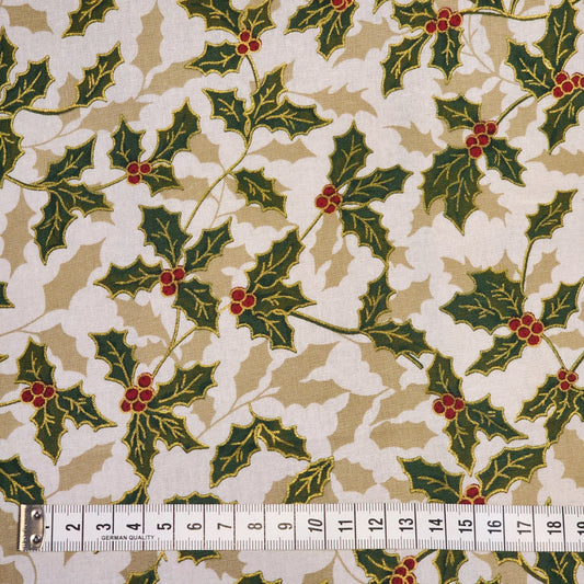 Christmas Holly - Medium - Cotton Poplin Fabric - 112cm wide - Cream