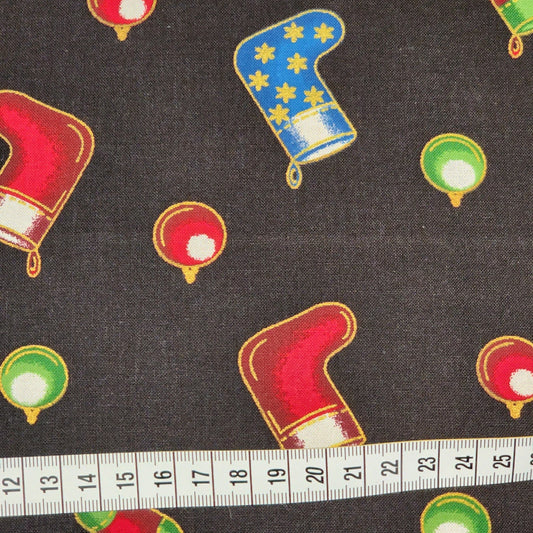 Christmas Stockings and Baubles - Cotton Poplin Fabric - 112cm wide - Black