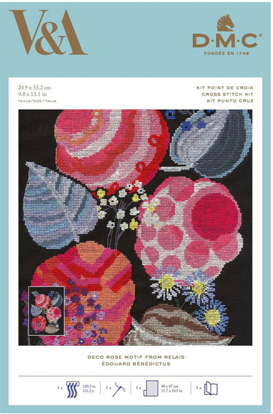 DMC V&A - Cross Stitch Kit - Deco Rose Motif - Edouard Benedictus - 24.9 x 33.2cm