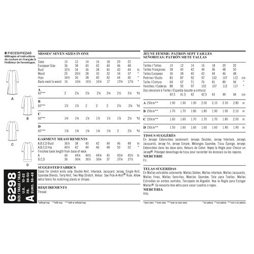 New Look Sewing Pattern 6298 N6298 Misses' Knit Dress with Neckline & Length Variations