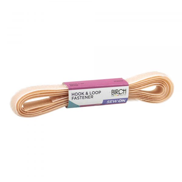 This beige sew on hook and loop fastener 20mm x 1m provides a strong long, lasting bond and has many uses such as: