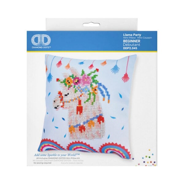 DAMAGED BOX - Diamond Dotz - Mini Pillow Kit - Llama Party - 18cm x 18cm