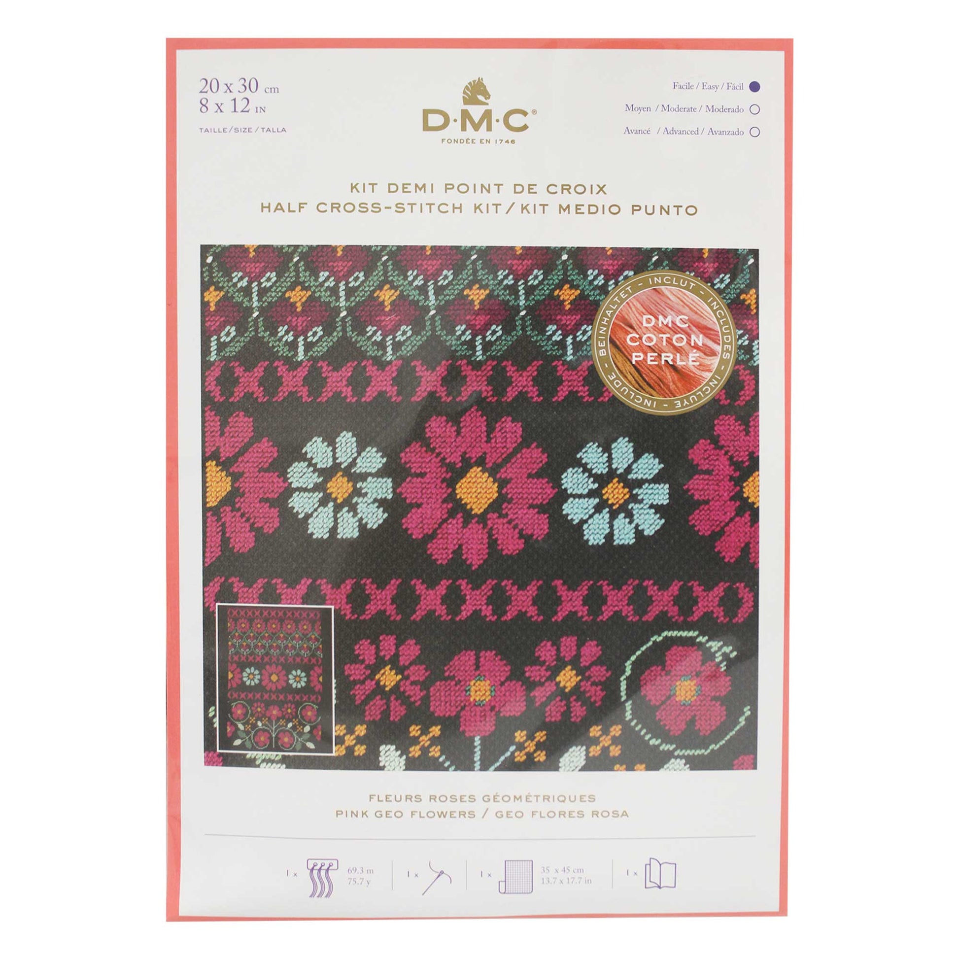 DMC - Half Cross Stitch Kit - Red Geo Flowers - 20 x 30cm